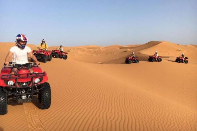 Experience the thrill of ATV quad biking in the golden dunes of Merzouga in the Sahara Desert. This adventure is perfect for both beginners and experienced riders, offering an unforgettable way to explore the vast desert landscapes.